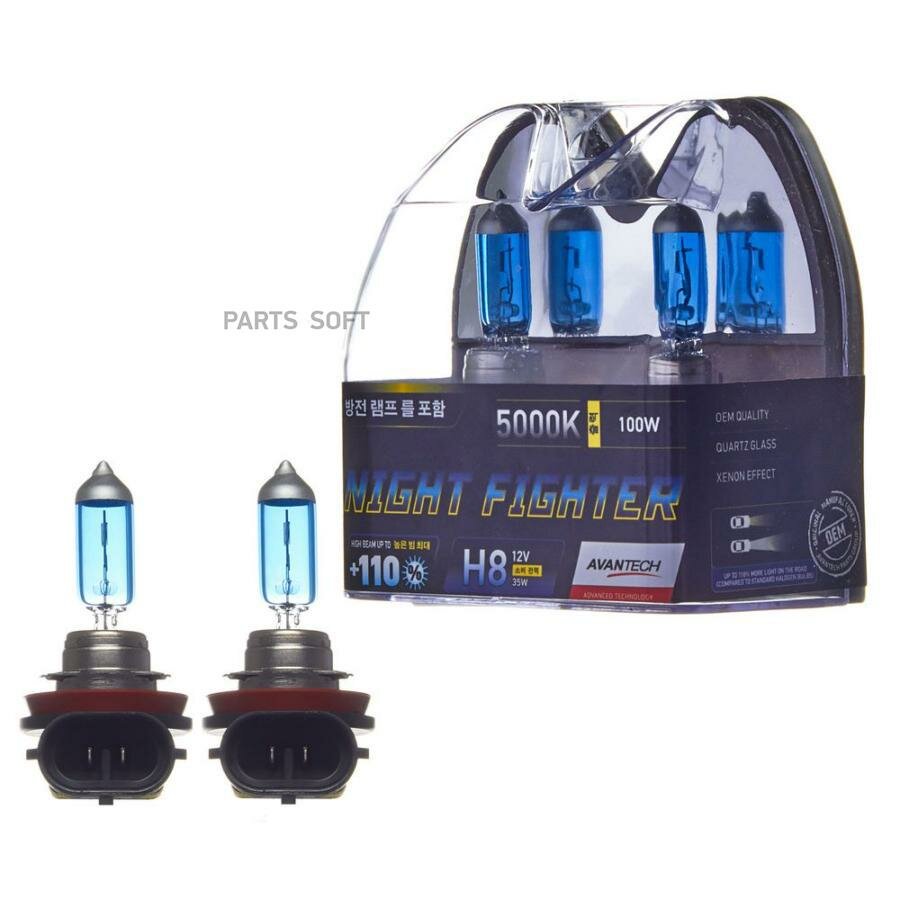 Лампа галогенная Avantech Night Fighter H8 12V 35W 5000K, 2 шт. (блистер)