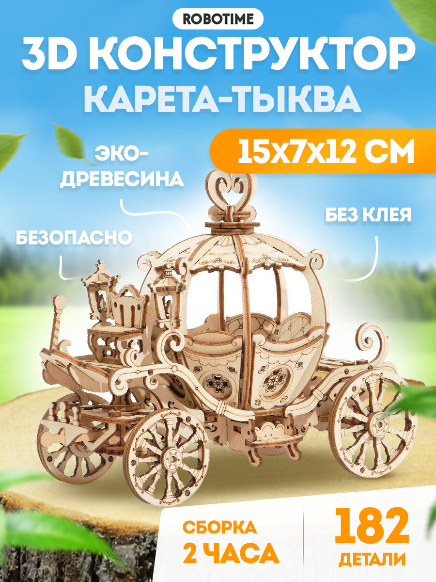 Карета - тыква 3D деревянный конструктор Robotime182 дет 27*19*6 см TG302 интересное: