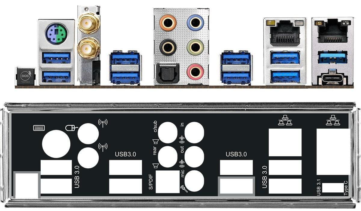 | Разъемы на задней панели | HDMI, PS/2 (клавиатура/мышь), выход S/PDIF оптический, USB Type-C, USB 3.1 x 10 |
