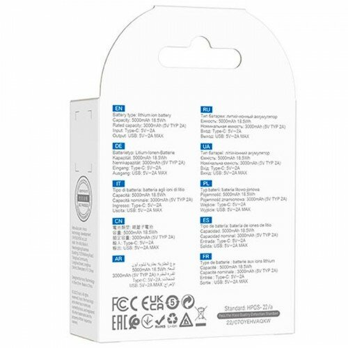 Hoco Power Bank J96 Strider 5000mAh White 6931474781345 .