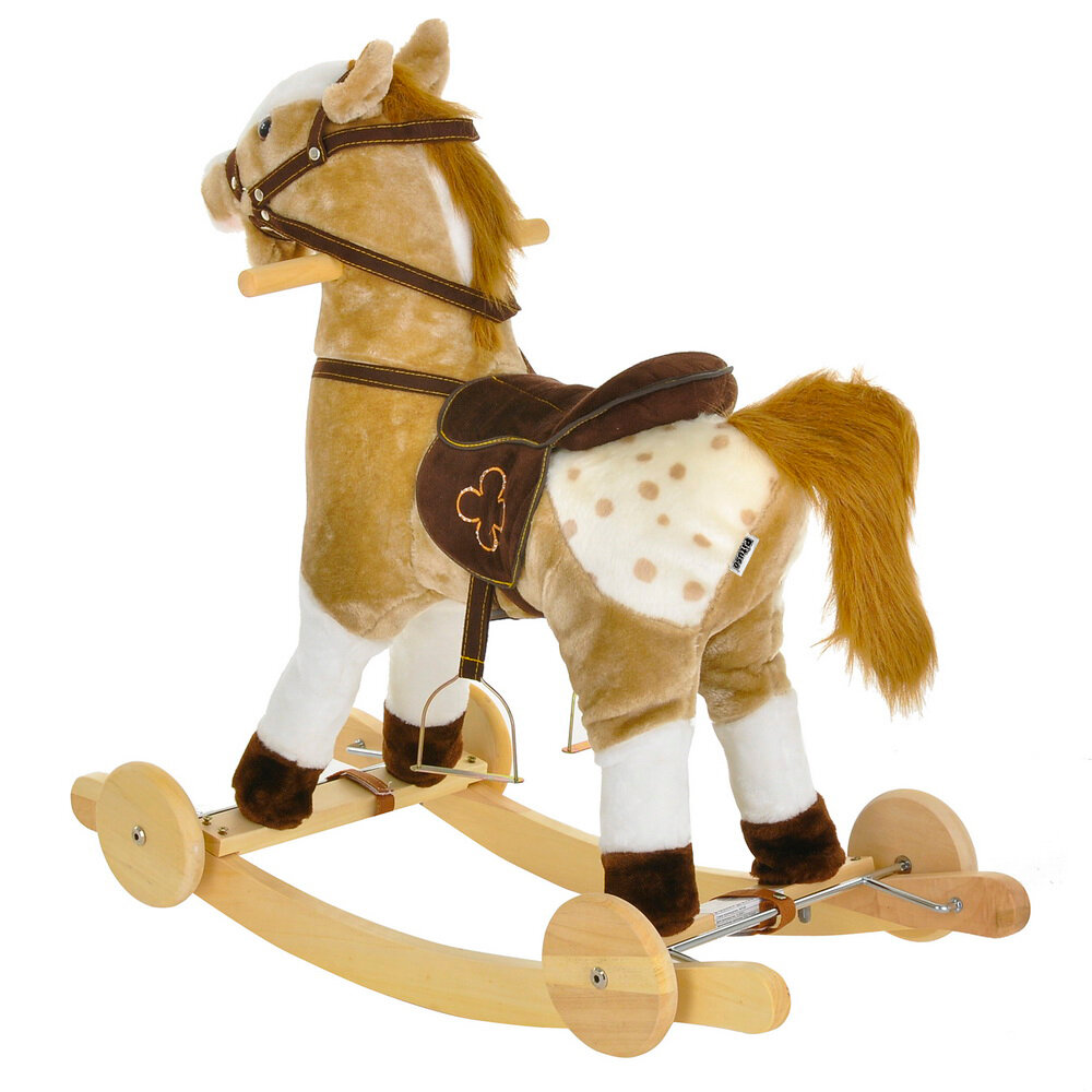 | Плюсы: | Качественный товар, сборка простая, лошадь шевелит губами и виляет хвостом (имитирует звуки скачки и ржания). Звук работает от 3-х пальчиковых батареек. Берите с колесами, а не только с качанием - ребенок дополнительно катает ее по квартире... |