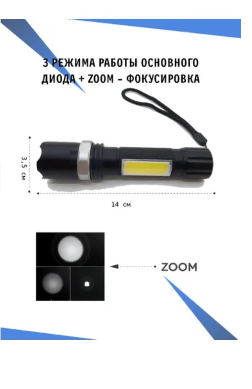 | Плюсы: | Отличный яркий фонарик. Покрывает большую площадь. Телескопическая линза можно менять дальность и диаметр луча. 2 фонаря в одном. Долго держит заряд. |