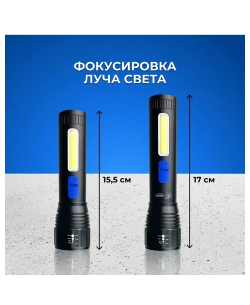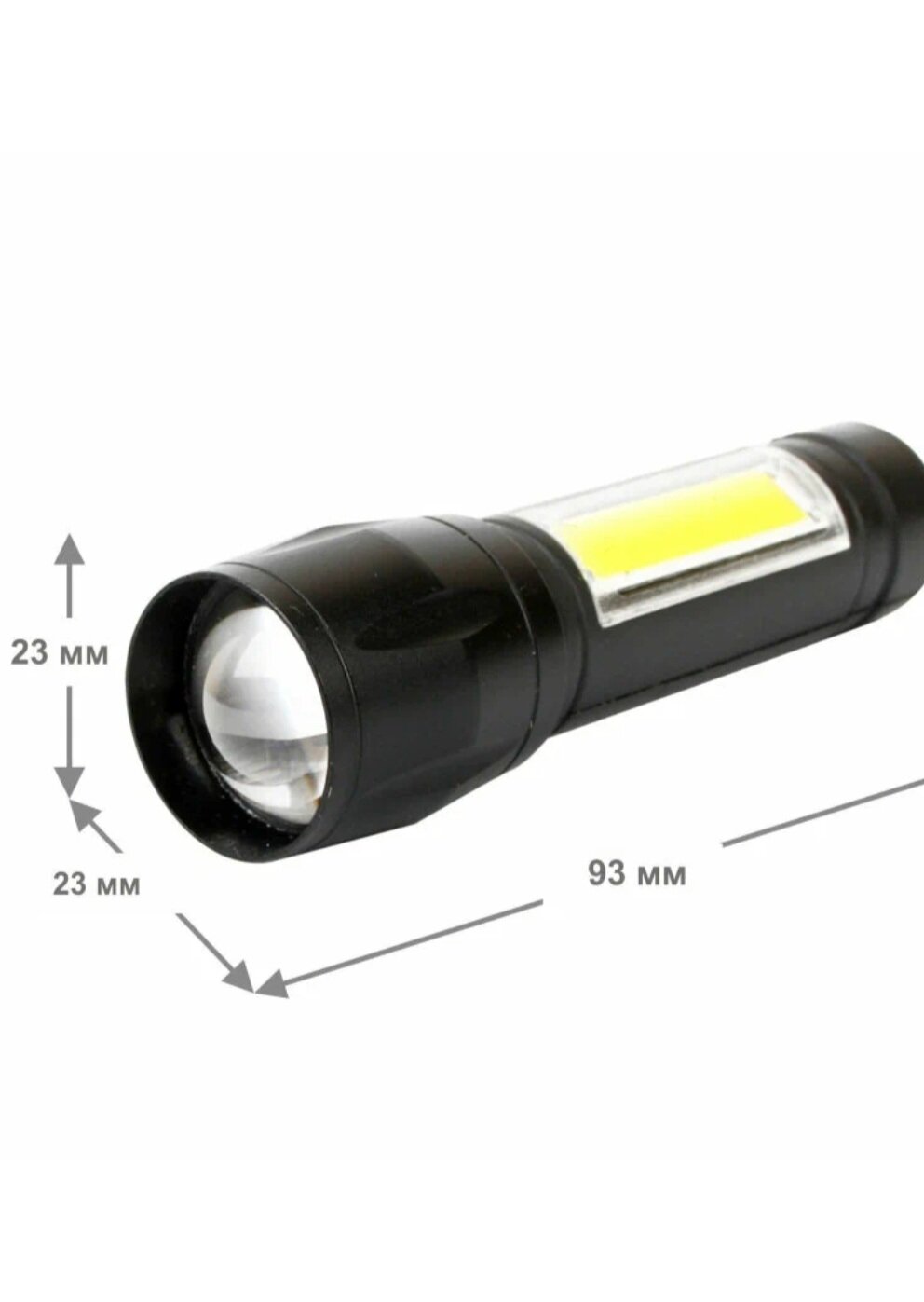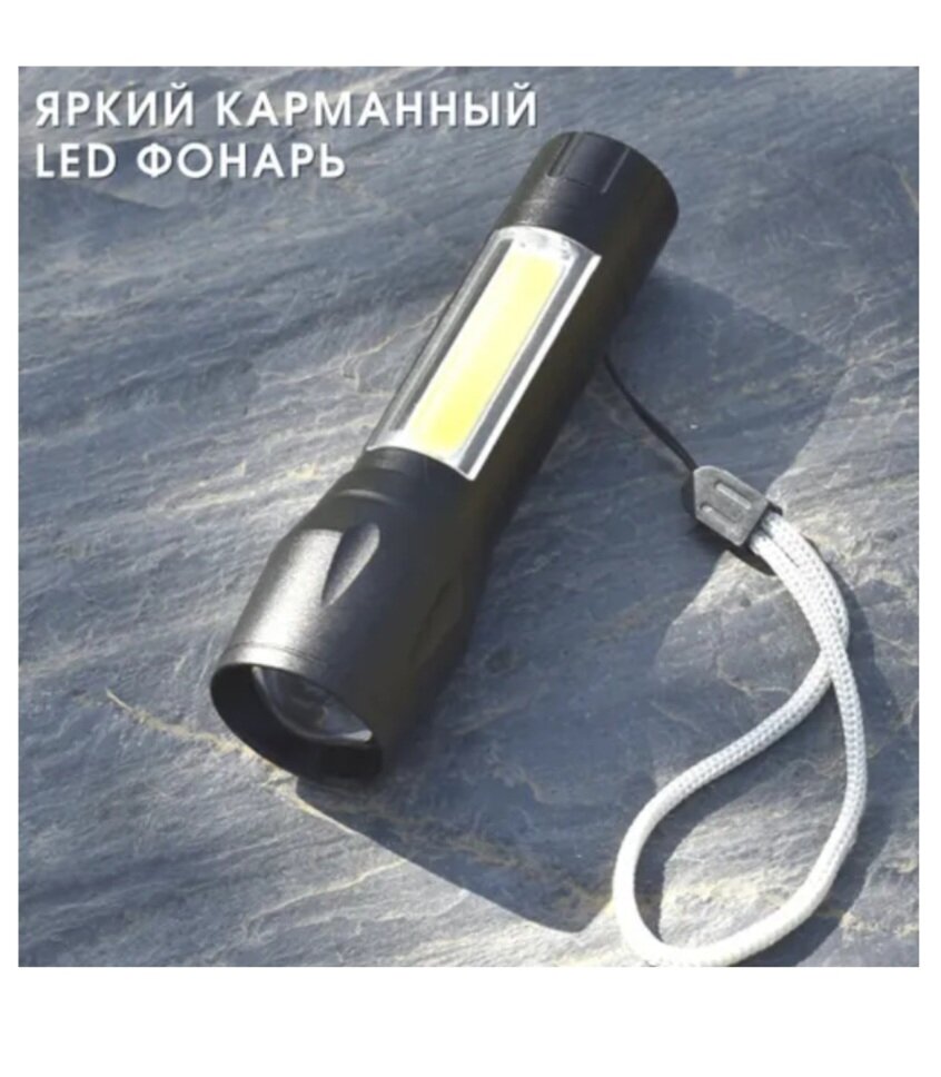Купить Ручной аккумуляторный фонарь космос 1Вт LED+5ВтCOB/линза/зум/Li-ion 18650 1000mAh/ABS-пластик/USB-шнур, KOS113Lit