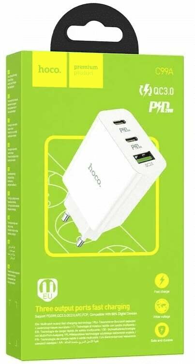 СЗУ Hoco C99A PD20W+QC3.0 three-port(2C1A), белый
