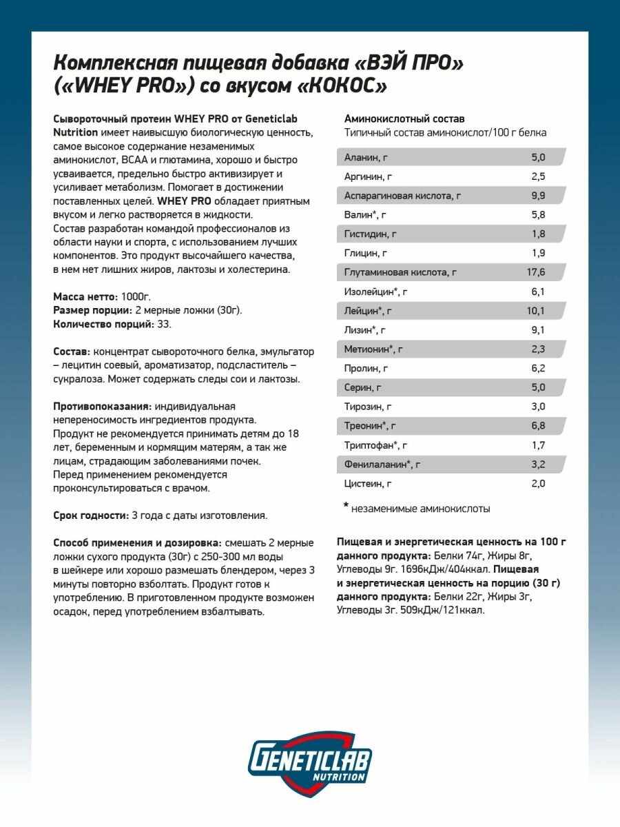 Geneticlab Whey Pro 1кг Кокос