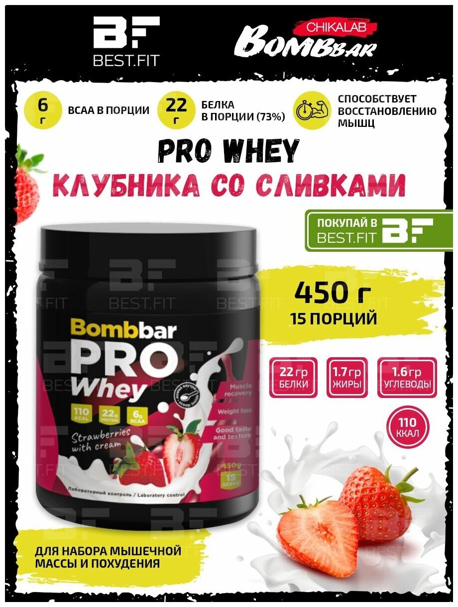 Bombbar, PRO Whey, 450г (Клубника со сливками)