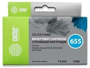 Купить Картридж струйный Cactus CS-CZ110AE 655 голубой 14.6мл для HP DJ IA 352555254525