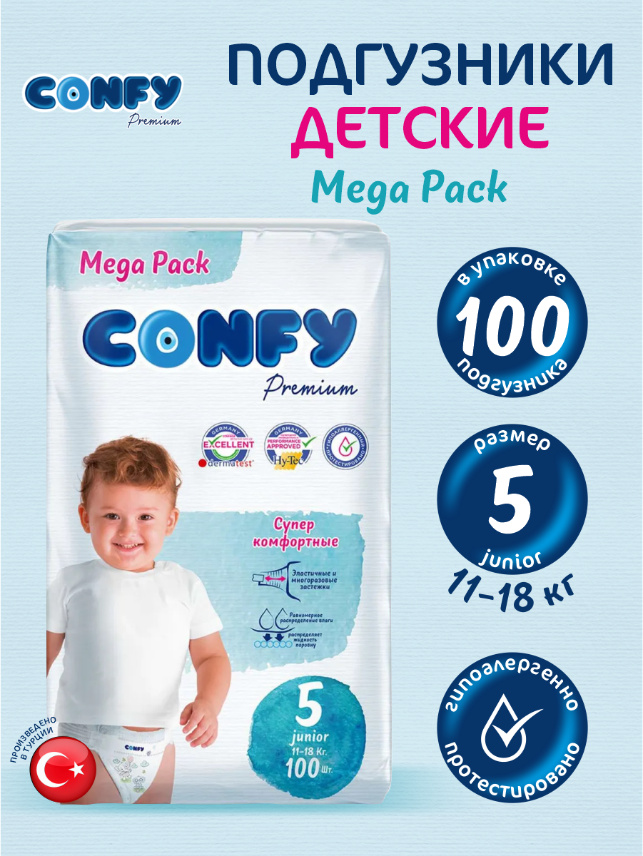 Подгузники Confy Premium Junior детские для мальчиков и девочек, 5 размер 11-18 кг, 100 шт