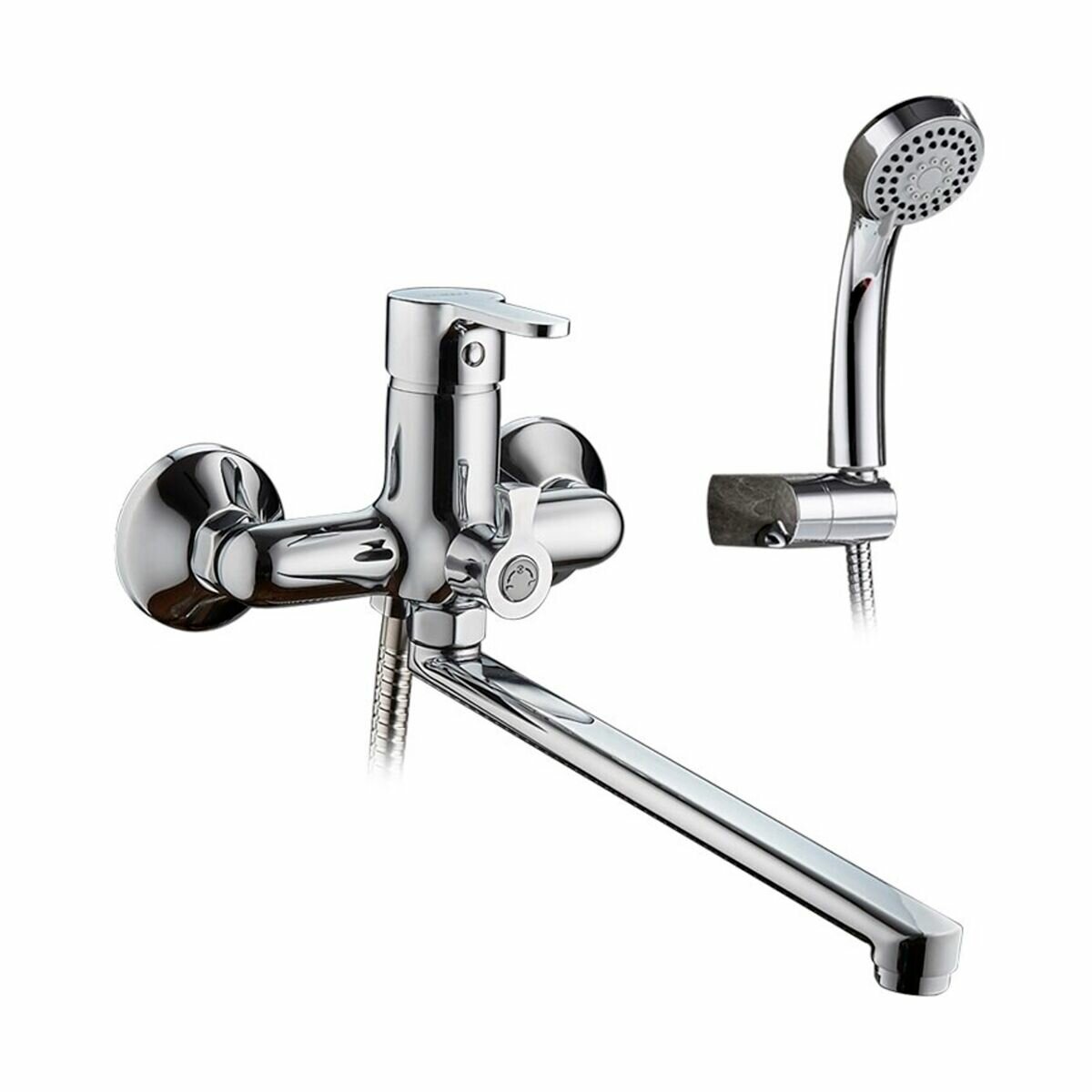 Однорычажный смеситель для ванны с душевой лейкой и длинным изливом Ledeme L2203