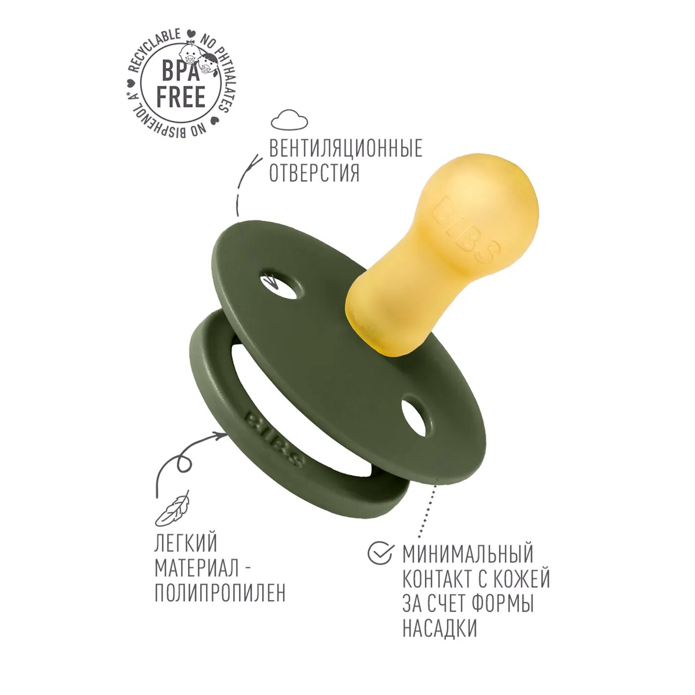 СохранитьСоска-пустышка BIBS Colour Hunter Green 6-18 месяцев интересное: