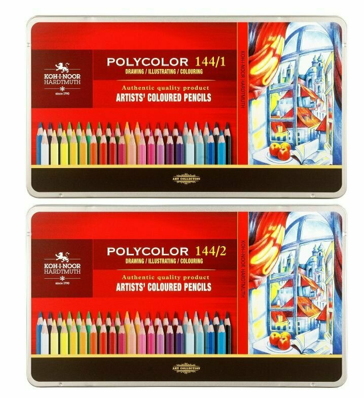 Карандаши цветные KOH-I-NOOR "Polycolor 3828", 144 цветов, в 2 металлических пеналах (3828144001PL)