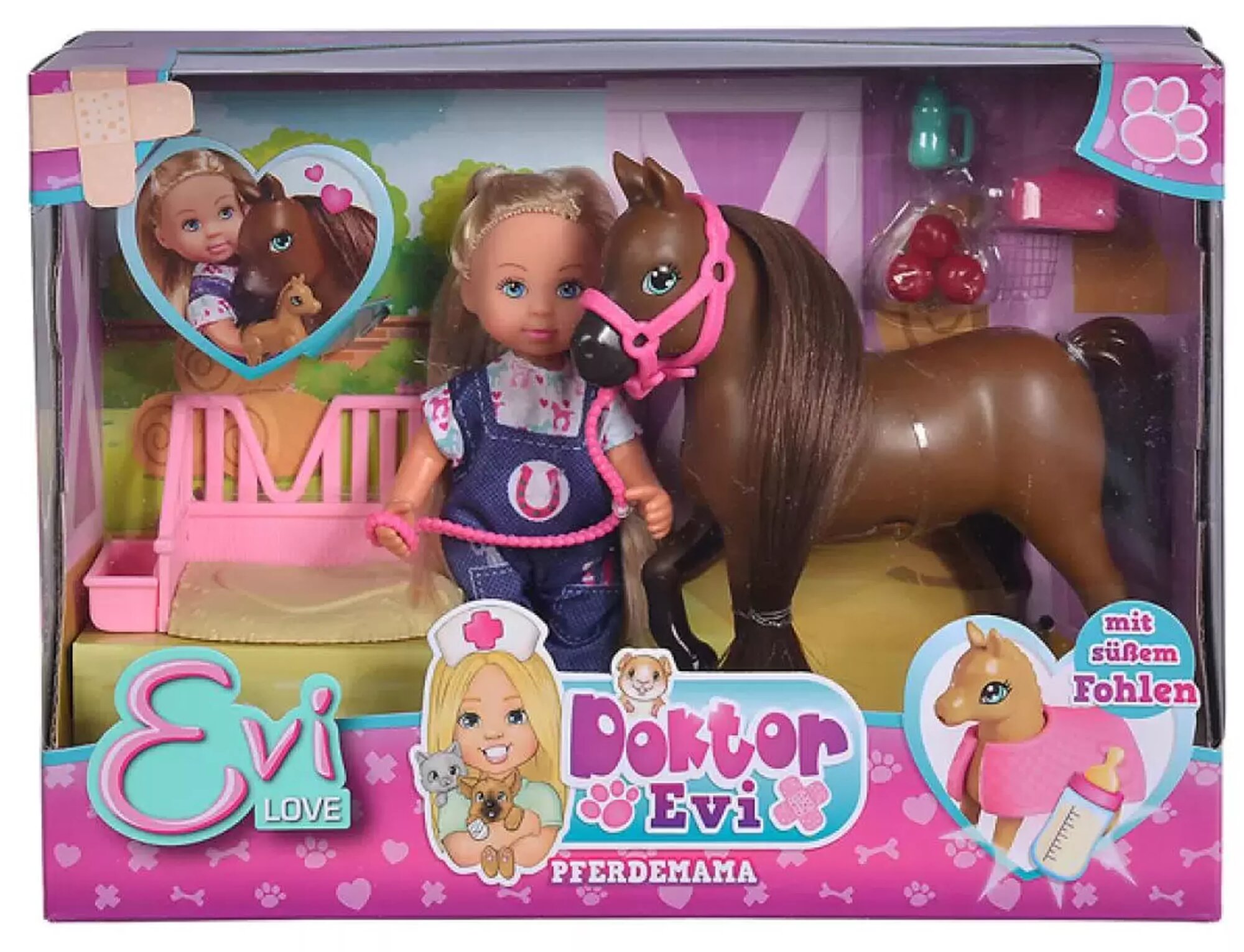 | Комплектация | кукла, лошадка, жеребенок, попона, бутылочка, загончик |