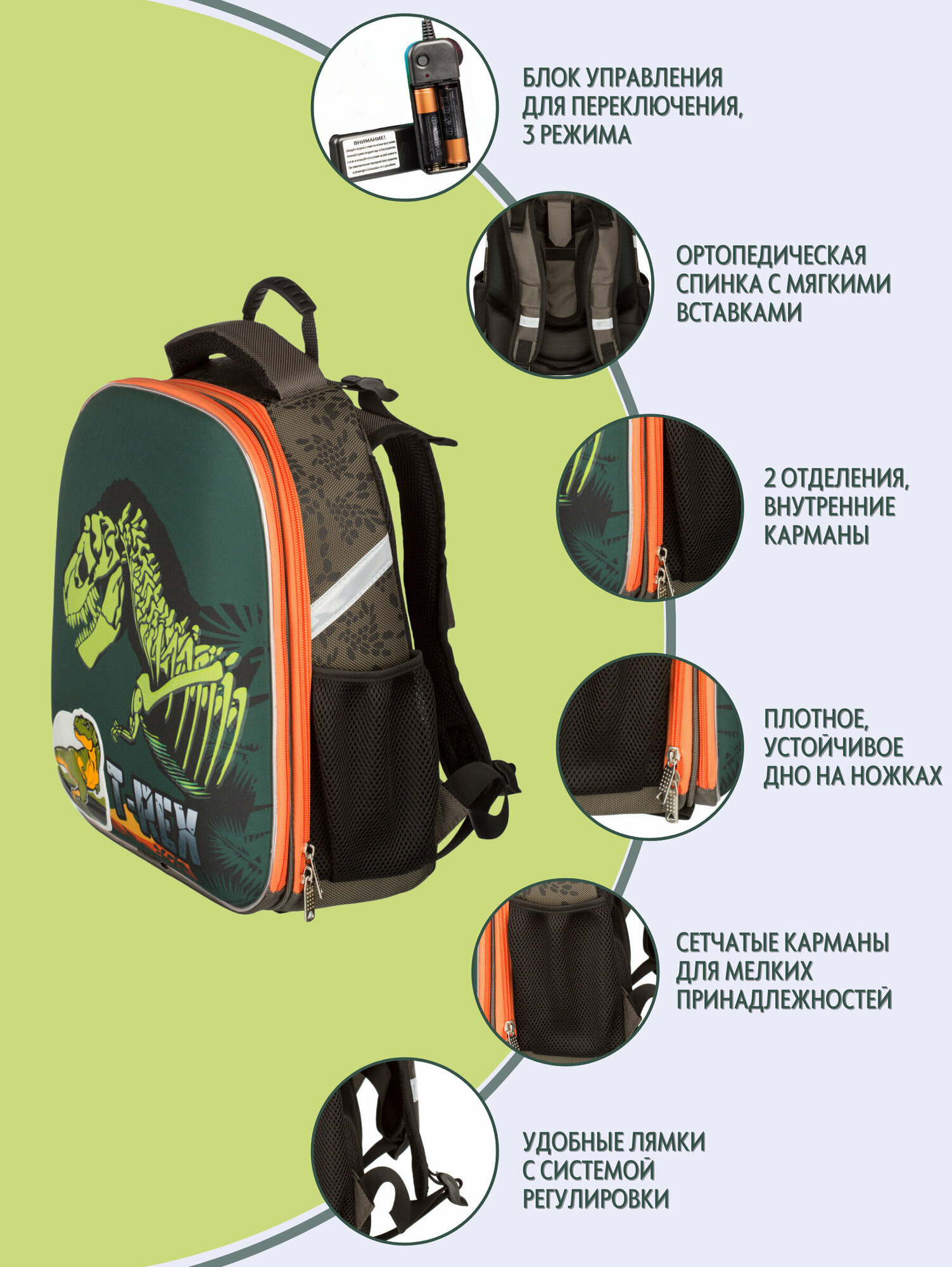 Ранец №1 School анатомический Basic T-Rex (неоновая подсветка корпуса на пульте д/у) 975128