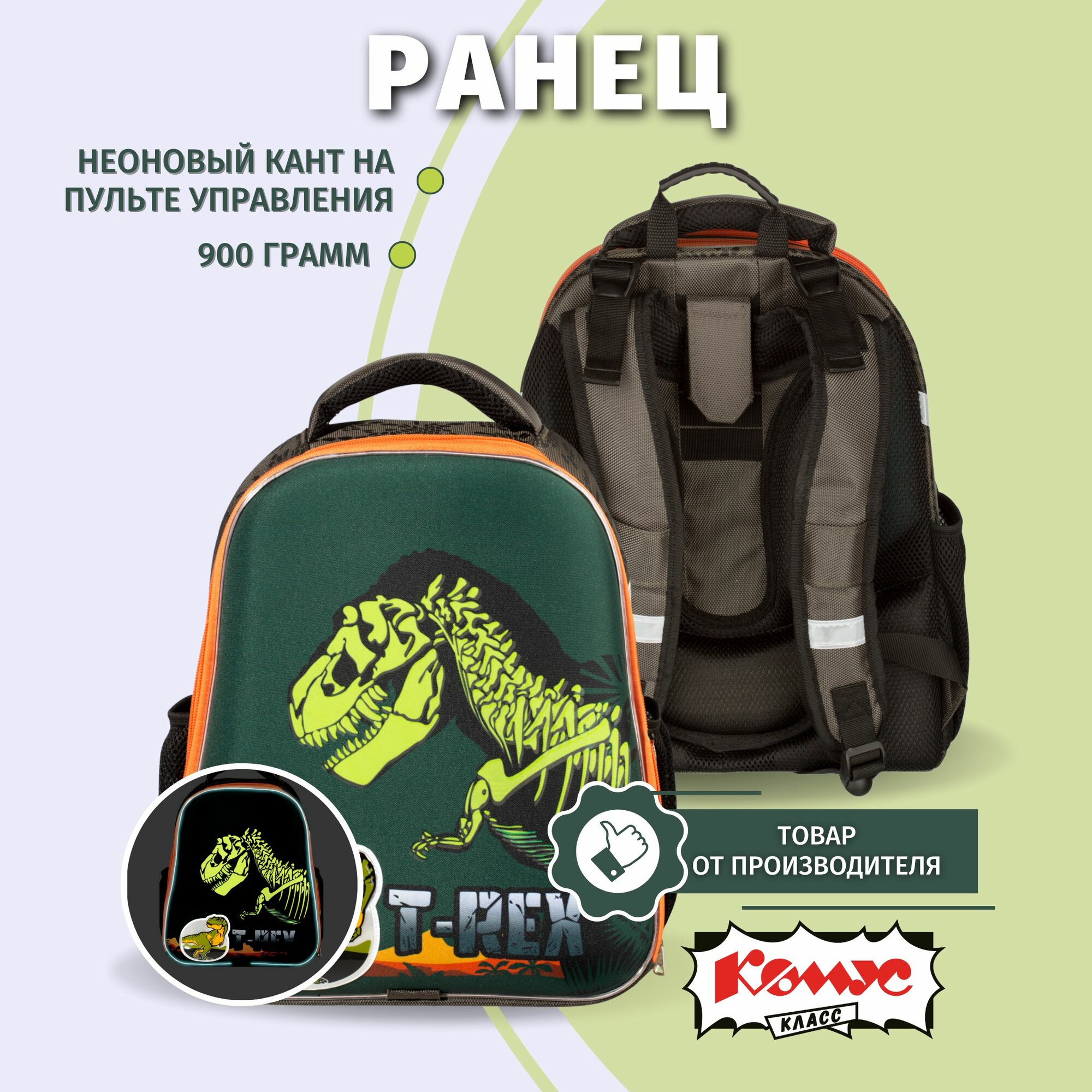 Рюкзак школьный Комус Basic T-Rex, портфель анатомический для мальчика, 2 отделения, 4 кармана
