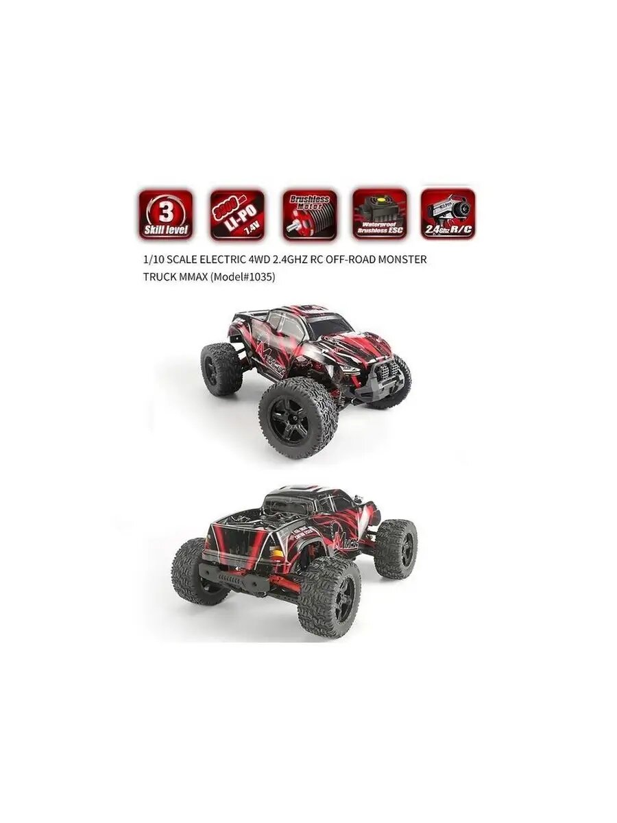 Радиоуправляемый монстр Remo Hobby MMAX Brushless UPGRADE 4WD 2.4G 1/10 RTR-RH1035UPG - Красный
