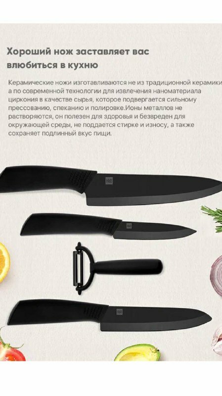 Набор керамических кухонных ножей Xiaomi Huohou Nano Ceramic Knife Set HU0010 (черный), шт HU0010 интересное: