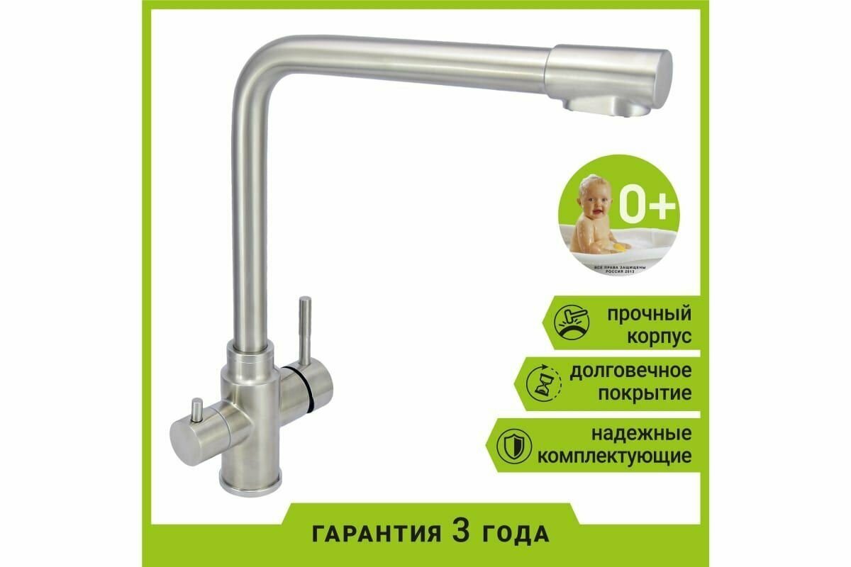 Смеситель для кухни с краном фильтром для фильтра для питьевой воды, нержавеющая сталь высокий излив длина 240 мм, картридж 35 мм, Juguni, Арт.: 0402.455 интересное: