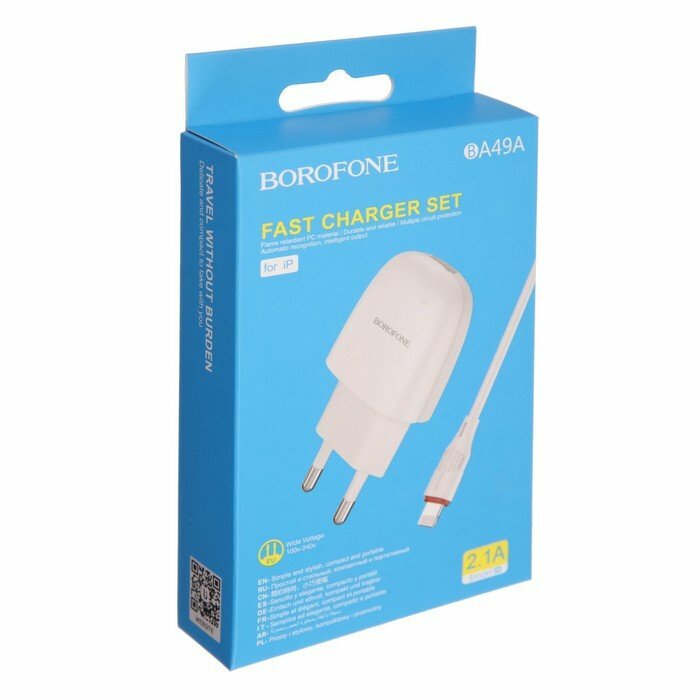 Сетевое зарядное устройство Borofone BA49A, Lightning
