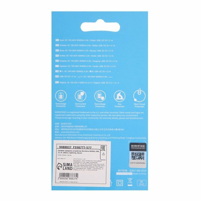 СохранитьСЗУ Borofone BA49A Vast power 1xUSB, с кабелем Lightning, белый интересное: