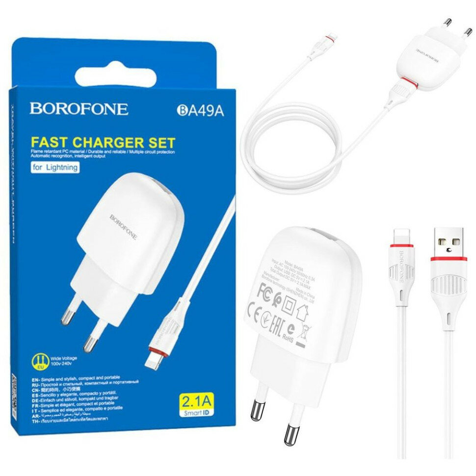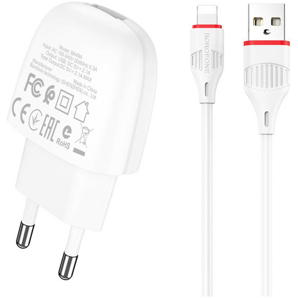 Сетевое зарядное устройство Borofone BA49A, USB, 2.1 А, кабель Lightning, 1 м, белое
