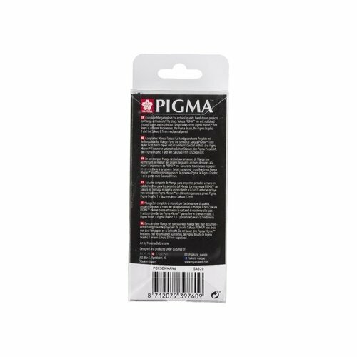 Sakura Набор капиллярных ручек Pigma Micron Manga 6шт (ручки 0.1мм 0.3мм 0.5мм кисть Pigma Graphic мех карандаш 0,7 мм) Черный