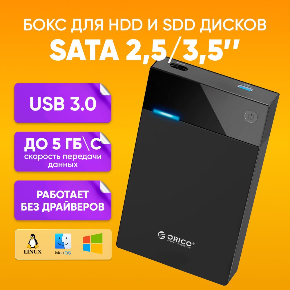 Корпус контейнер для жесткого диска HDD ORICO 2,5/3,5 SATA USB 3.0