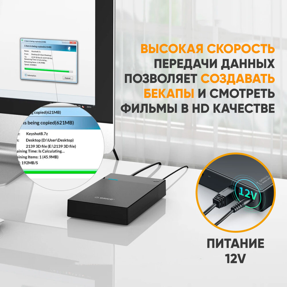 Внешний корпус для HDD 3,5' Orico 3588C3 Black . интересное: