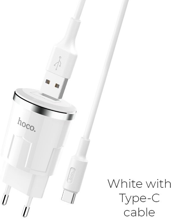 Купить Сетевое зарядное устройство Hoco C37A + кабель USB Type-C, белый