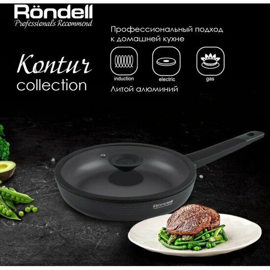 Сковорода Rondell Kontur, с крышкой, диаметр 28 см