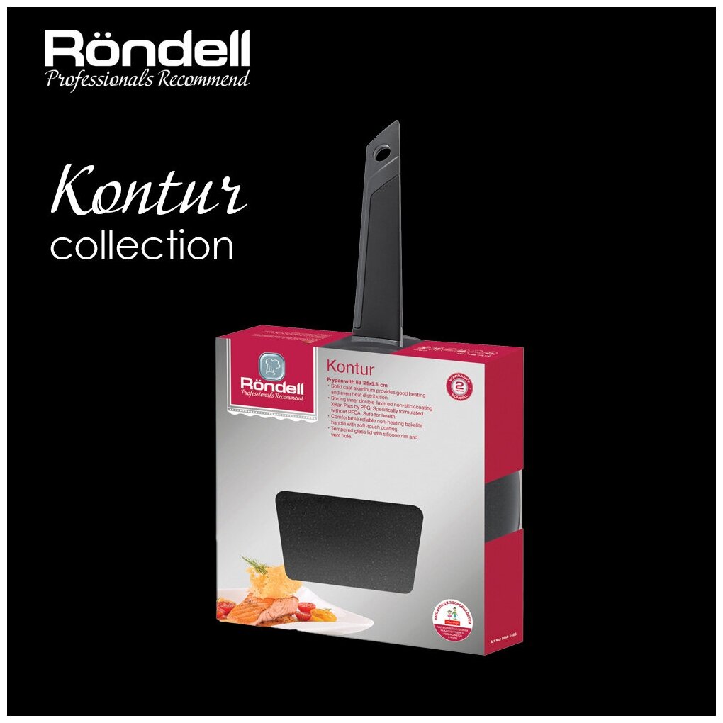 Сковорода Rondell Kontur RDA-1487, 26см, с крышкой, антипригарное покрытие, алюминиевая