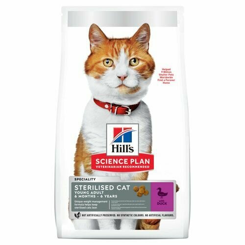 Корм Hill's Science Plan для молодых стерилизованных кошек и кастрированных котов, с уткой, 1,5 кг