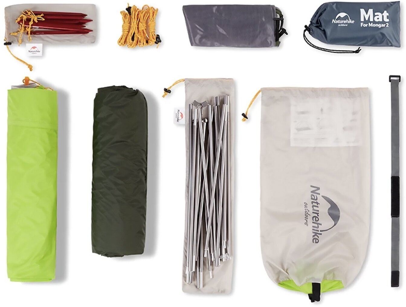 Палатка Naturehike Mongar NH17T007-M 20D,двухместная сверхлегкая, зелено-белая, 6927595726051, 6927595726051