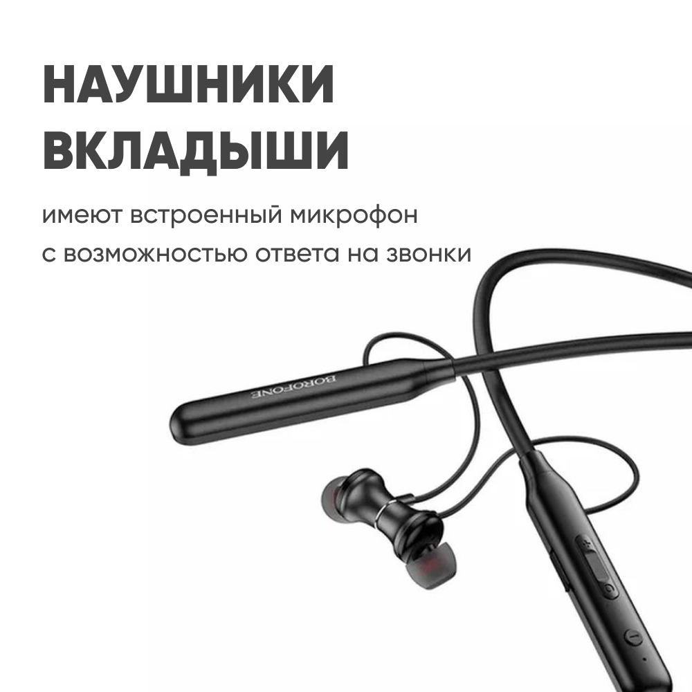 Беспроводные Bluetooth спортивные наушники Borofone BE56, внутриканальные, черные / Магнитные наушники Sports для смартфона, плеера, компьютера
