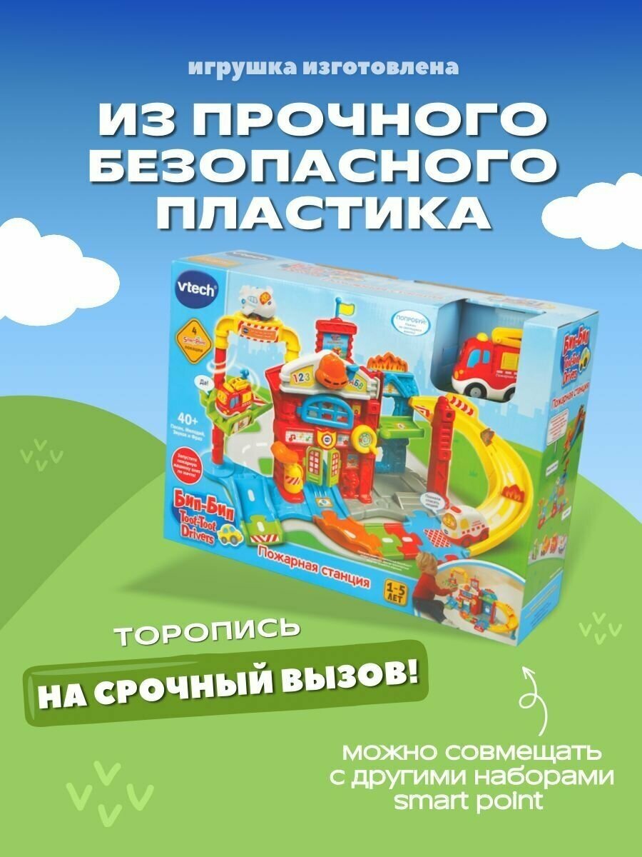 Vtech Обучающая игрушка - парковка Пожарная станция Бип-Бип Toot-Toot Drivers с 1 машинкой, со светом и звуком 80-503926