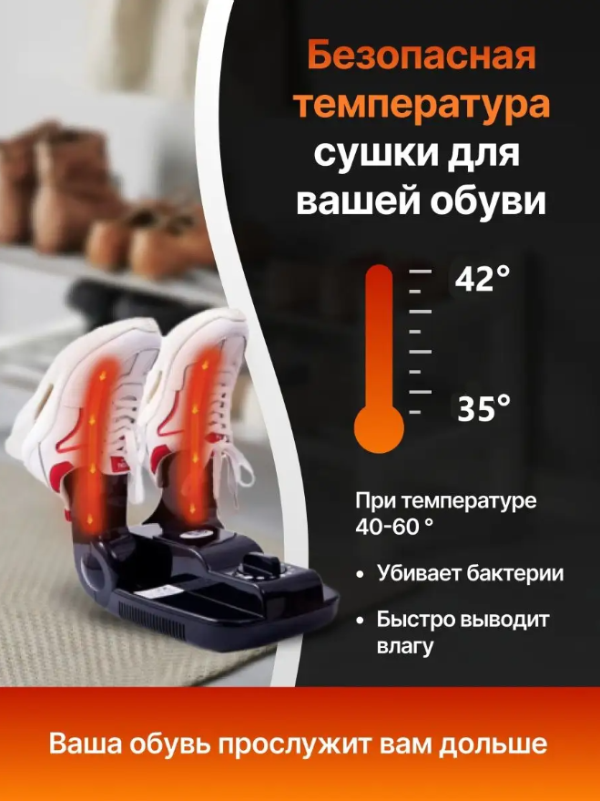 | Плюсы: | Быстро просушивает обувь и перчатки, незаменимая вещь в доме. Заказываем уже не первый раз. |