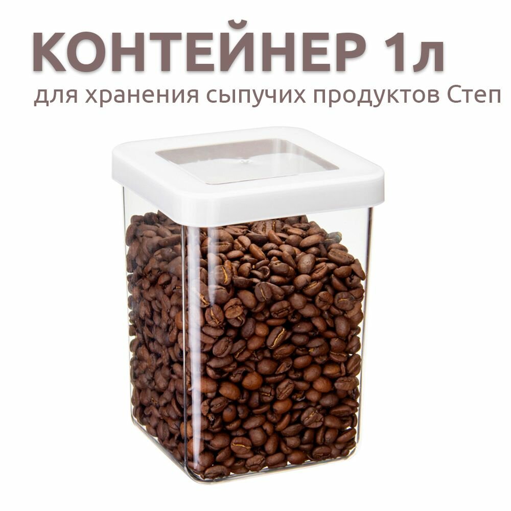 Купить Контейнер для сыпучих продуктов «Степ», 1 л, 10×10×14 см, цвет белый