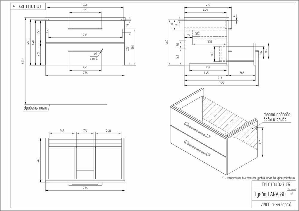 СохранитьТумба под раковину подвесная LARA 80 для COMO 80 орех интересное: