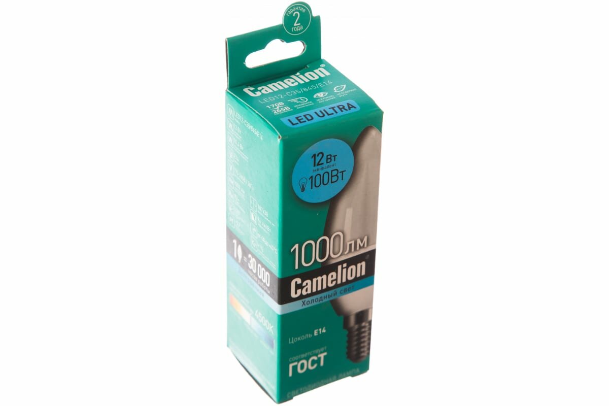 (Эл.лампа светодиодная 12Вт 220В), CAMELION LED12-C35/845/E14 (1 шт.)