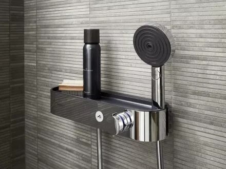 СохранитьТермостатический смеситель для душа Hansgrohe ShowerTablet Select 400 матовый черный 24360670 интересное: