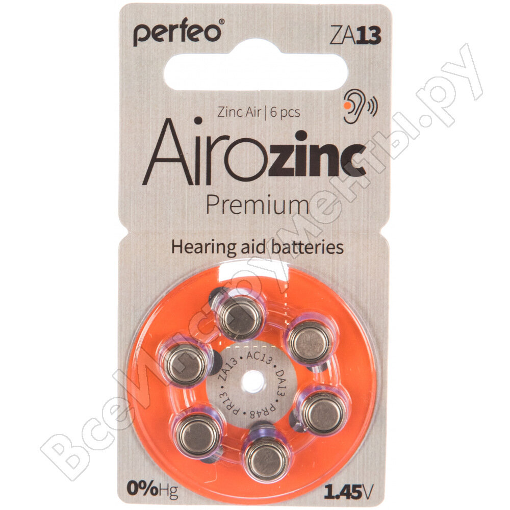 Батарейки для слуховых аппаратов PERFEO ZA13-6BL AIROZINC PREMIUM 6 шт.