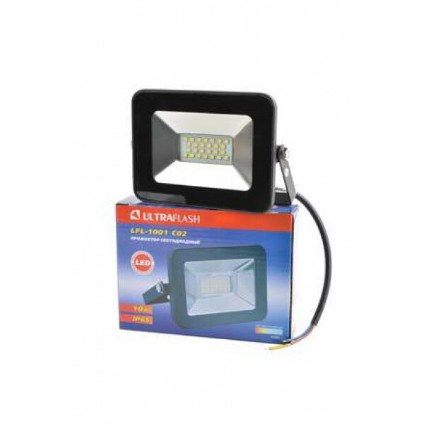 Ultraflash Прожекторы светодиодные LFL-1001 C02 черный LED SMD прожектор, 10 Вт, 230В, 6500К