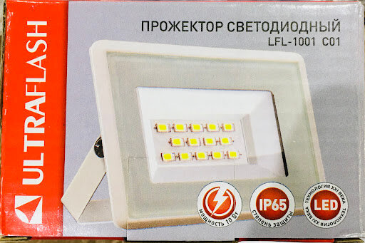 Светодиодный прожектор 10Вт 6500К размер 150х110х30мм IP65 - LFL-1001 C02 (Ultraflash)(код заказа 14408 И)