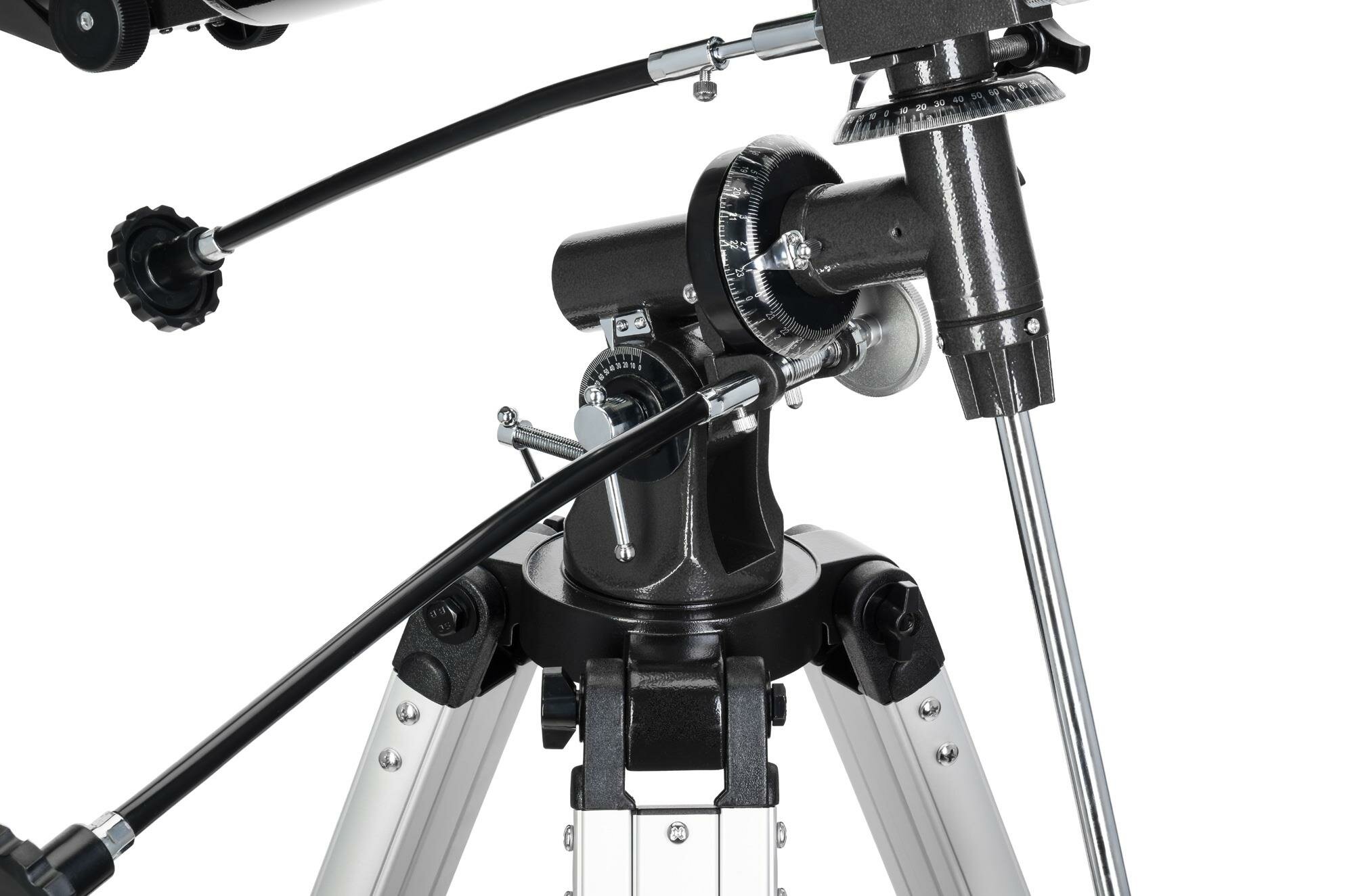 | Комплектация | труба телескопа, окуляр SUPER 10 мм, 1,25", окуляр PL 17 мм, 1,25", искатель с красной точкой (Red Dot), диагональное зеркало 90°, экваториальная монтировка EQ2, противовес, штанга противовеса, ручки тонких движений, алюминиевая тренога, лоток для аксессуаров, инструкция по эксплуатации и гарантийный талон |