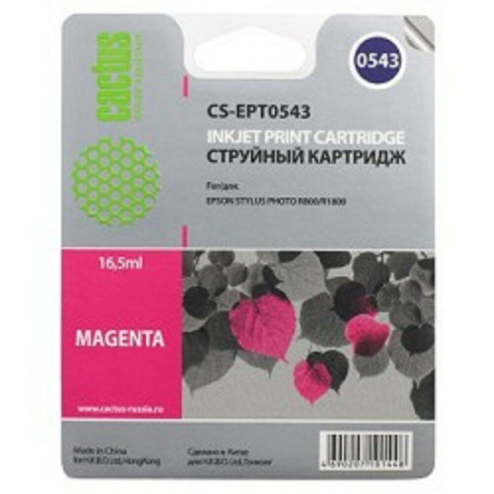 Картридж струйный Cactus CS-EPT0543 T0543 пурпурный (16.2мл) для Epson Stylus Photo R800/R1800