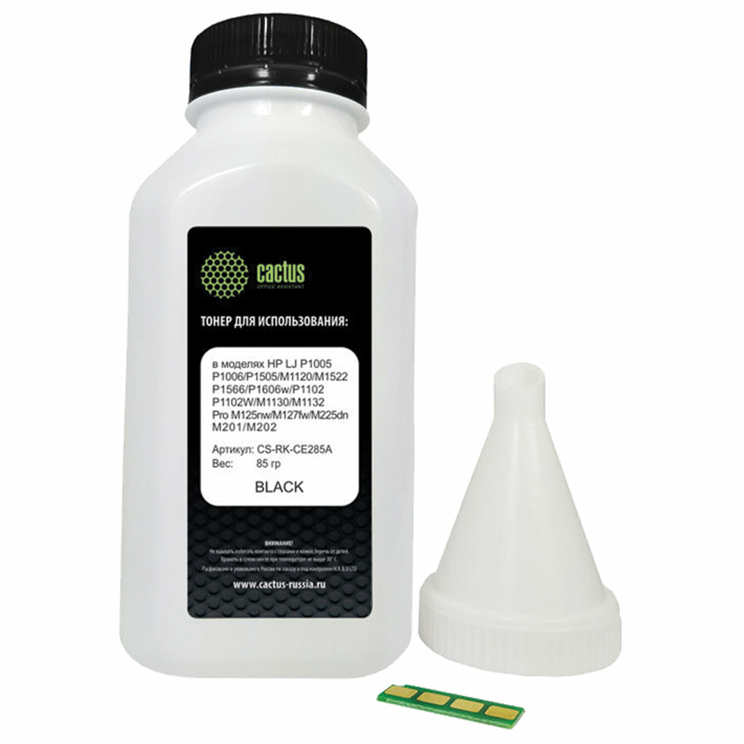 Тонер Cactus CS-RK-CE285A, для HP LJ P1005/M1120/P1606w; Pro M125nw/M127fw/, черный, 85грамм, флакон, чип