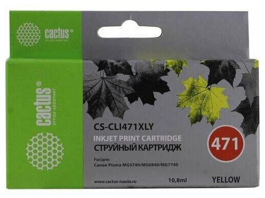 Картридж струйный Cactus CS-CLI471XLY CLI-471XL Y желтый (10.8мл) для Canon TS5040/MG5740/MG6840/MG7740