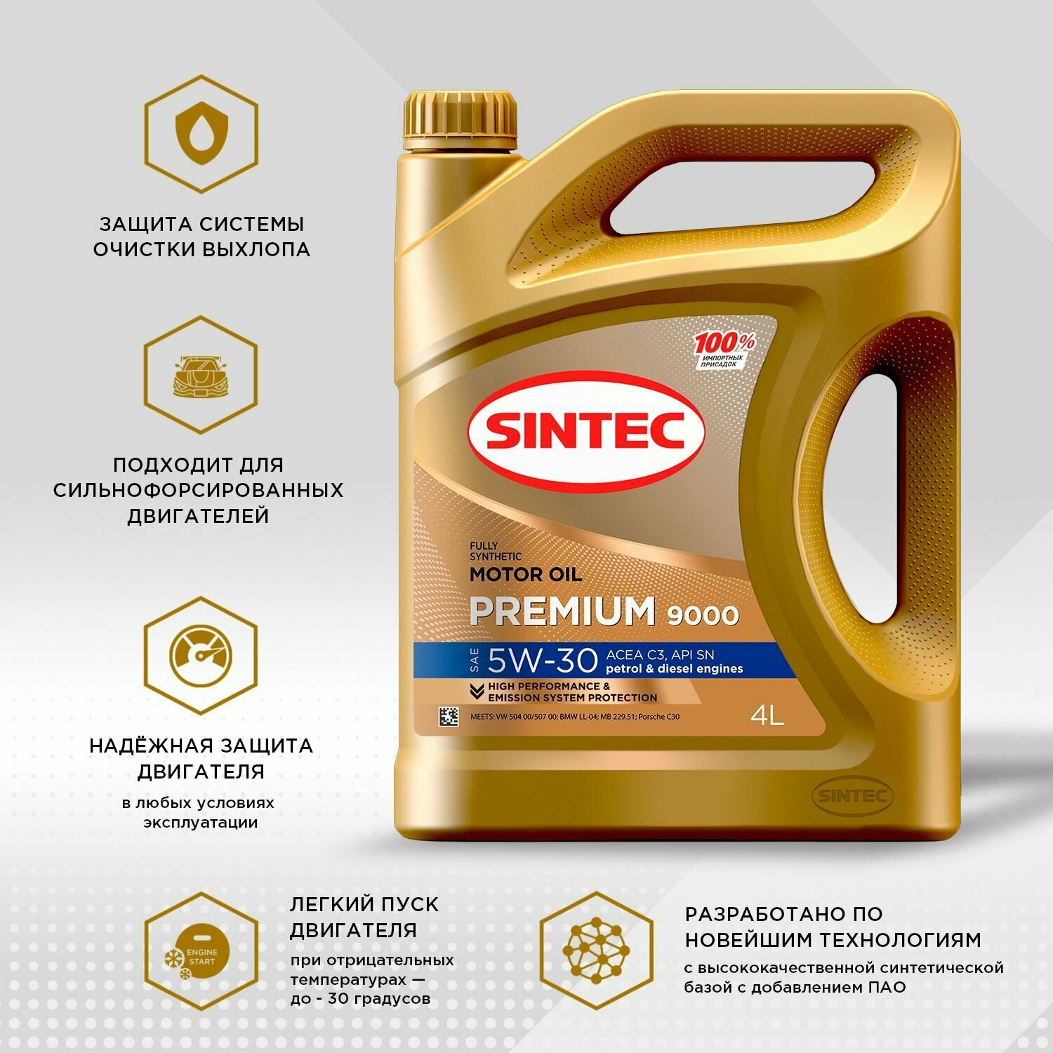 Sintec PREMIUM 9000 SAE 5W-30 API SN ACEA C3 4л синтетика (600131)