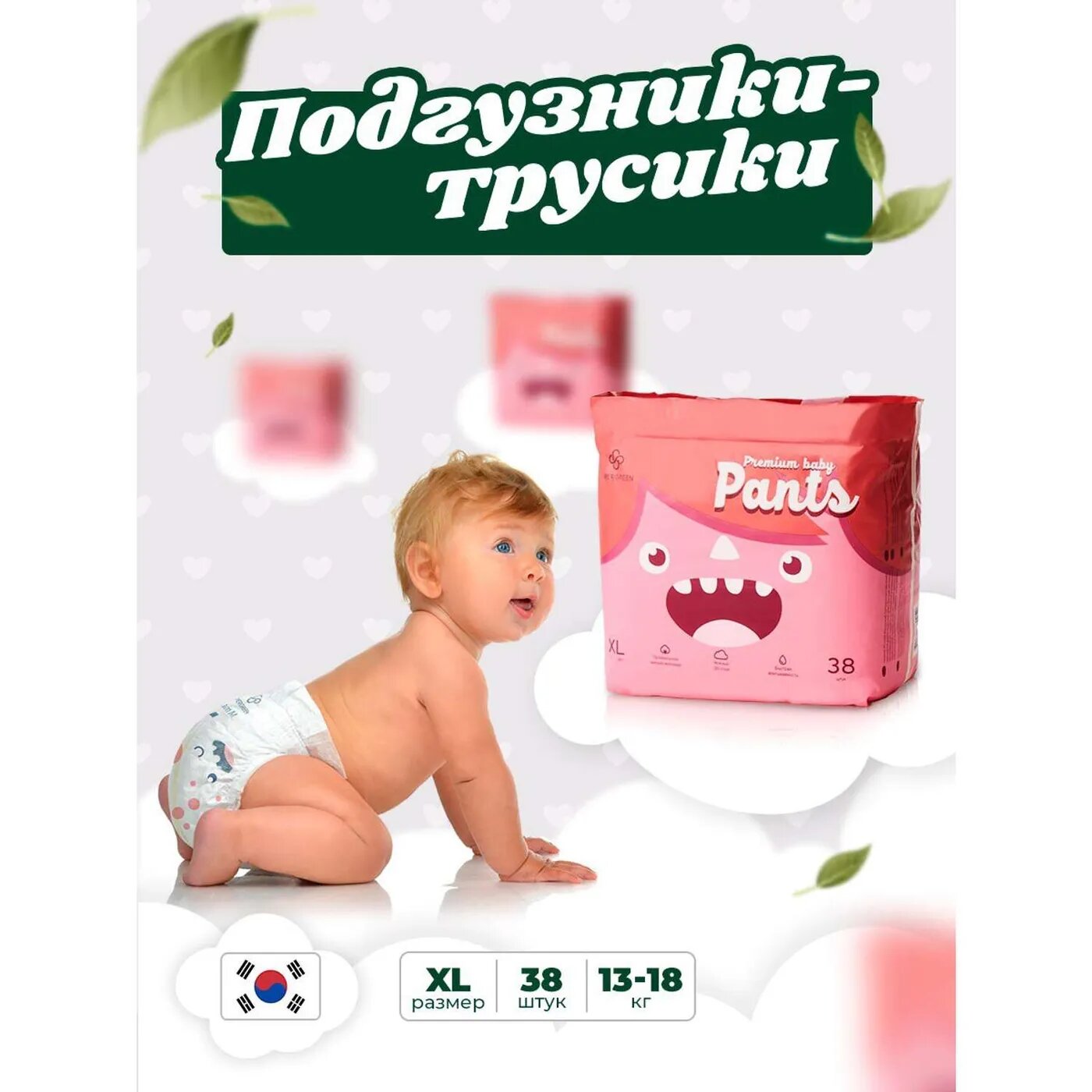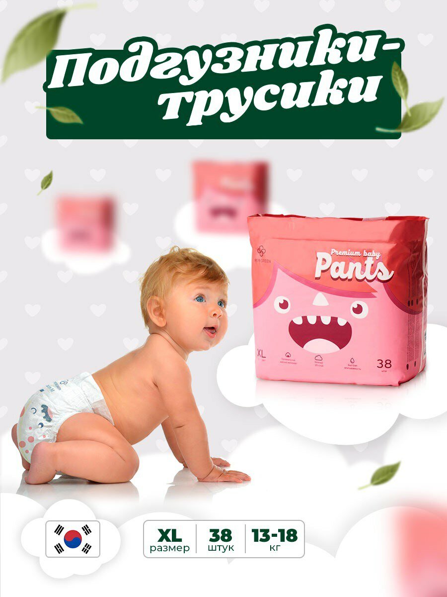 Подгузники-трусики SUPERGREEN Premium baby Pants размер XL 13 - 18 кг 38 шт интересное: