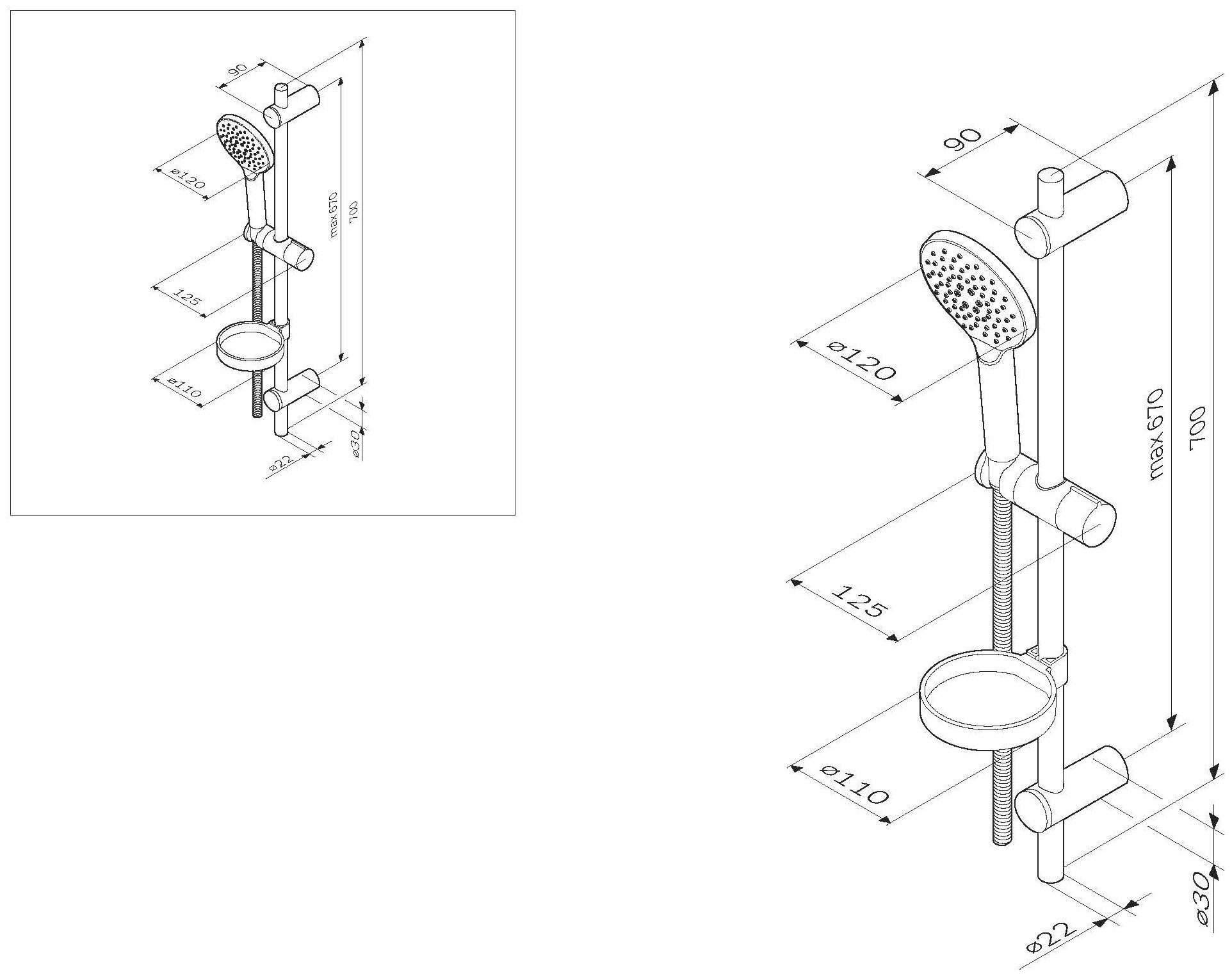 | Дополнительная информация | высота стойки для душа: 700 мм; диаметр душевой лейки: 110 мм |