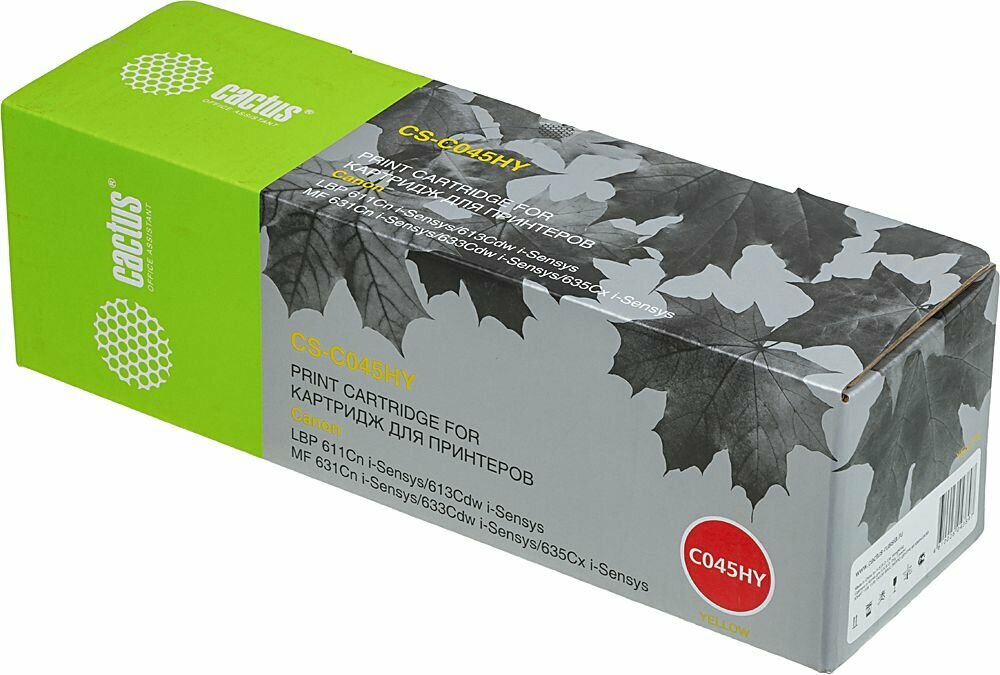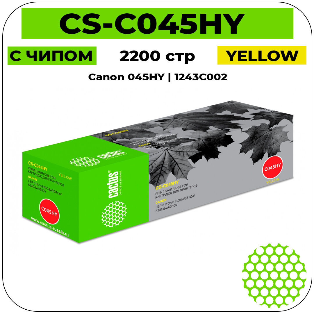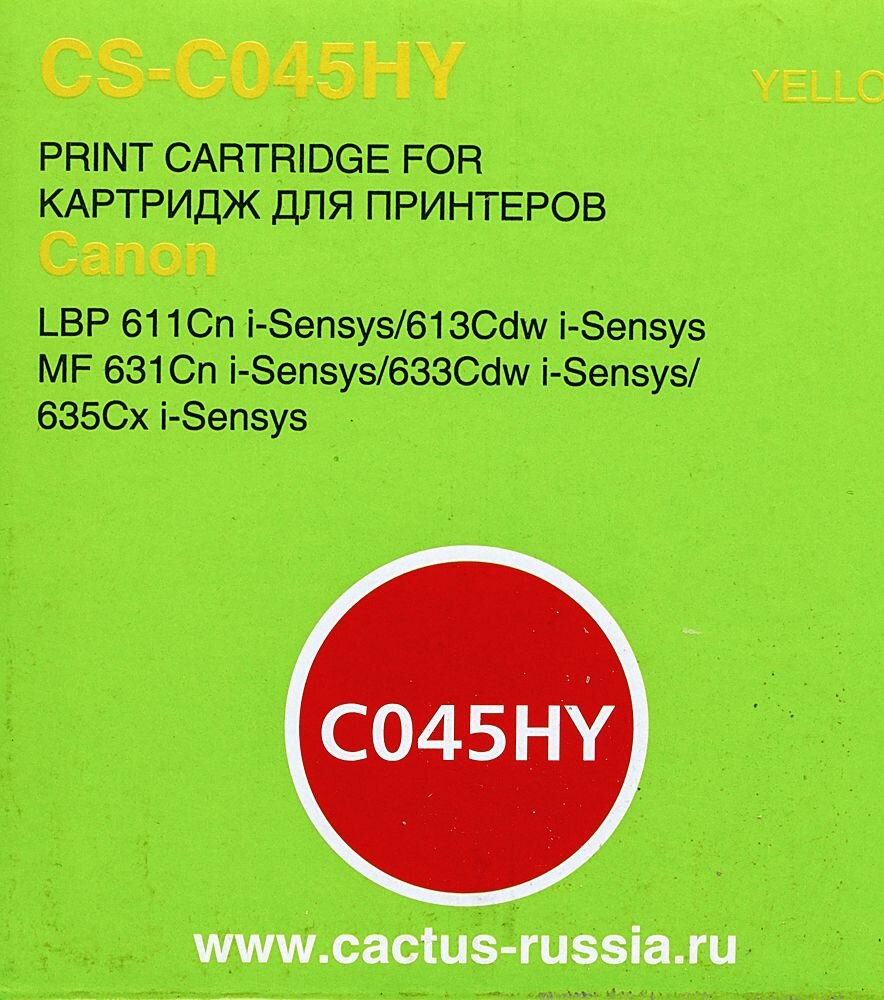 Купить Картридж Cactus CS-C045HY 045 H Y желтый, для CANON LBP 611Cn/613Cdw/631Cn/633Cdw/635Cx, ресурс до 2200 страниц